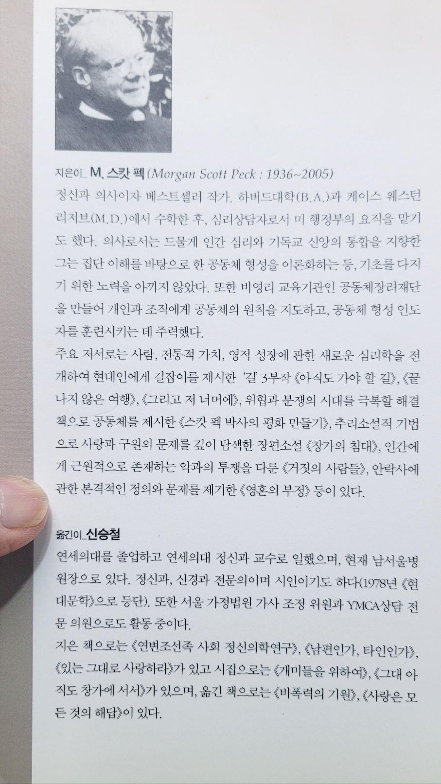 M. 스캇 펙 박사(의사이자 박사)가 쓴 아직도 가야할 길은 오래 오래 두고 보고 싶은 책입니다.