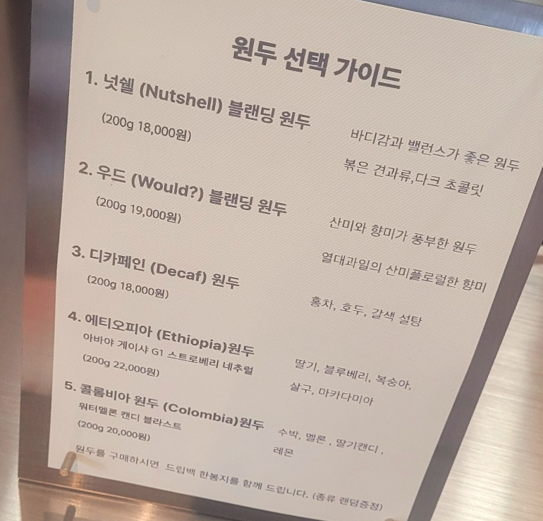 넛셀은 바디감이 있는 다크한 맛이었구요. 콜롬비아 원두는 산미가 있는 맛이었습니다.